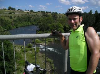 June 22. Today was sunny and prime for a repeat of yesterday as we were going 96 miles to Spokane. However, the temperatures were mostly in the 70s and low 80s and we had a tailwind almost the whole way. Everybodys’ attitude was much better today. I was pleased that, though I’m a bit sore, I was able to finish in 6:15, and generally felt really good. The All that training time was good for something. The scenery today didn’t change much and was mostly wheat fields (which we learned at the light show last night are irrigated from the water provided by the Coulee Dam). Spokane is a pretty little city, but I won’t see much of it. The tour time takes quite a big chunk of the evening and add in a little personal time for laundry and blog writing, and the whole night is gone. Tonight, we’re staying in Spokane at Gonzaga U. (whose I-net terminal I’m using right now), and tomorrow, it’s another 98 miles to Kellog, Idaho. Again, patience is asked of everyone I owe e-mail repsonses to. We have a free day on Sunday and I’ll be definitely resting and catching up.